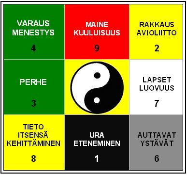 Baguassa on kahdeksan sektoria 1 4 ja 6 9 ja lisäksi keskustan alue jota kutsutaan myös 5 alueeksi. Me sukhilla olemme aina kiinnostuneita erilaisista sisustufilosofioista ja tavoista suhtautua kotiin ja sen henkeen. Mukavaa että olet löytänyt blogiini. The owner herself architect and feng shui consultant has personally taken care of the study and decoration of all spaces based on original feng shui techniques.