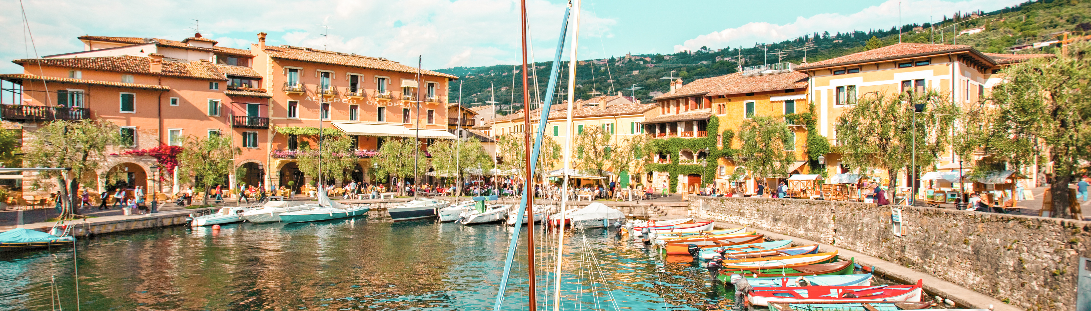 Rivan bardolinon gardan malcesinen sirmionen ja peschiera del gardan asukkaat johdattavat kävijän aitoon italialaiseen kyläelämään jossa kengät kopisevat kaduilla gelatoa myydään keskiaikaisen kaupungin kujilla ja illan valaisevat tuhannet tähdet jotka toistuvat gardajärven pinnassa.